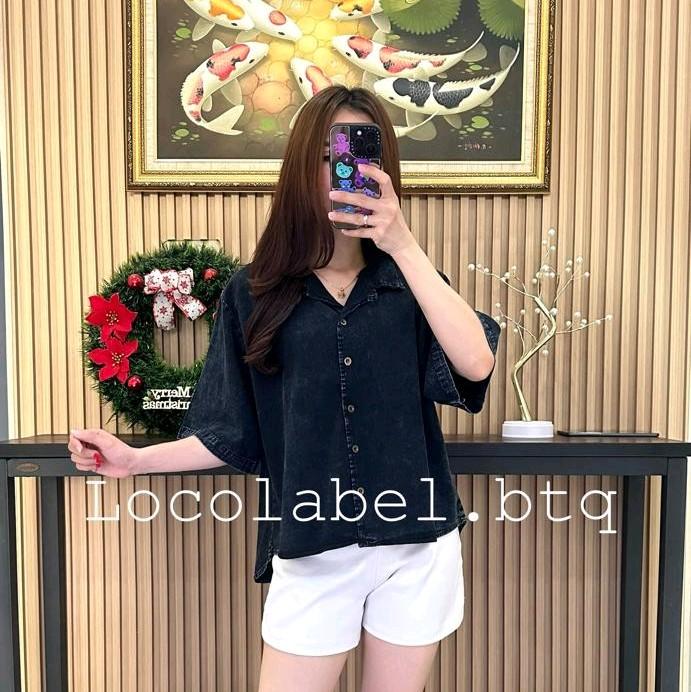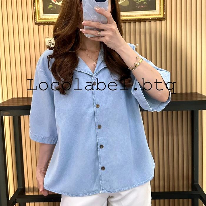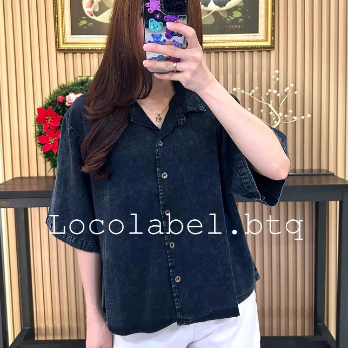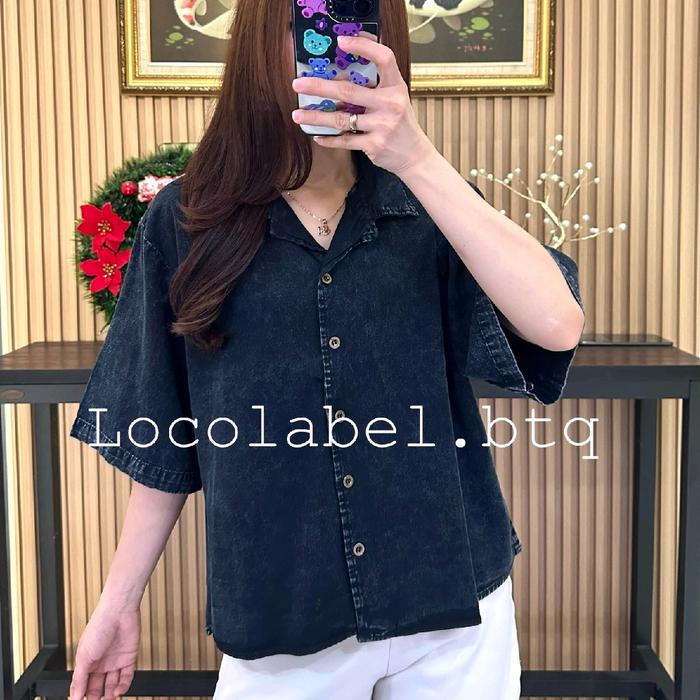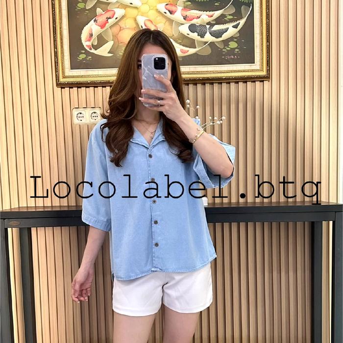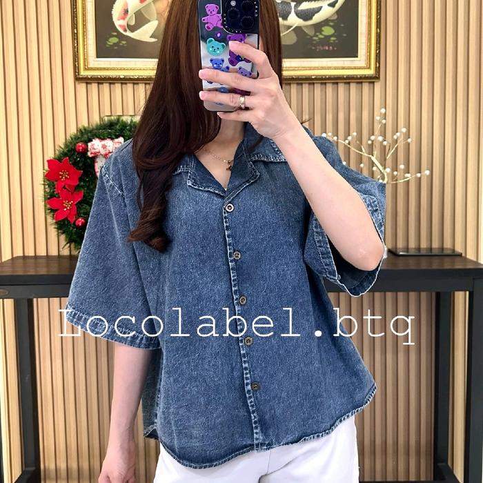 Locolabel - [Ld : 114Cm] Lolita Denim Shirt Jeans Pendek - Dark Denim
