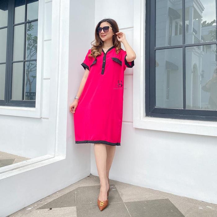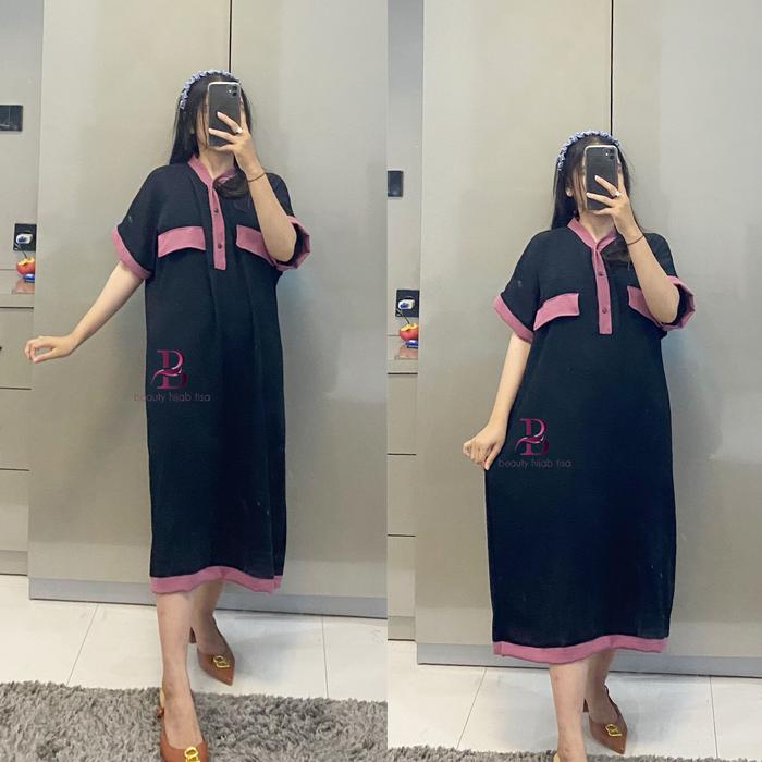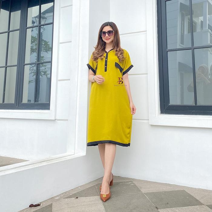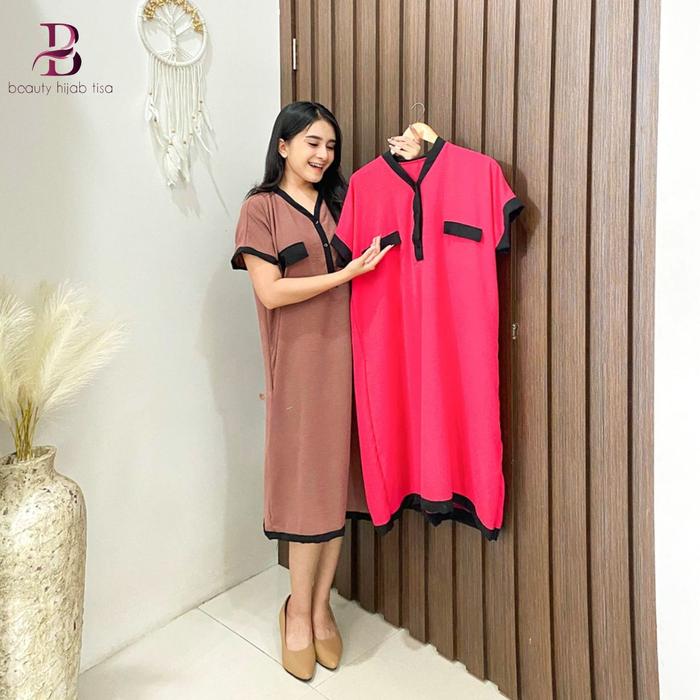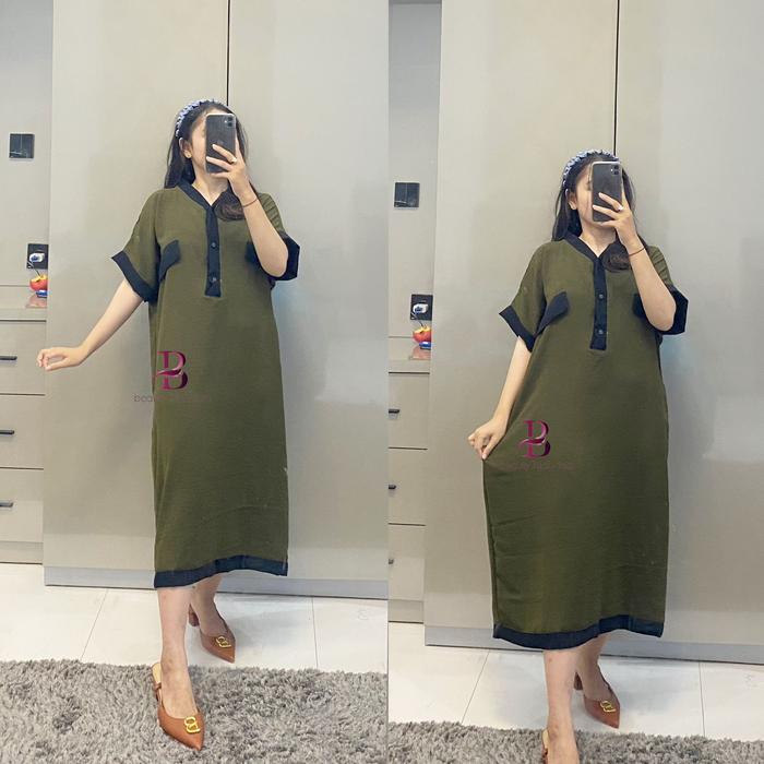 Db - Sivali Daster Wanita Kekinian Dress Pendek Busui Kancing 2025 Panjang Selutut Midi Bumil Baju Tidur Crinkle Airflow