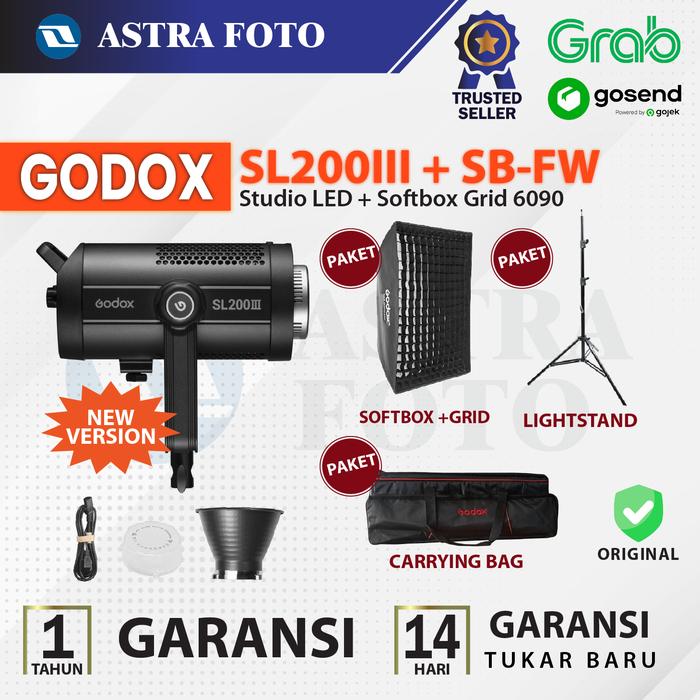 Godox Sl200 Iii Softbox Grid Lampu Video Light Led - Sl200Iii Sl 200 - Standard, Tanpa Tas