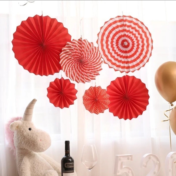 Paper fan merah set / paperfan 17 agustus merah putih