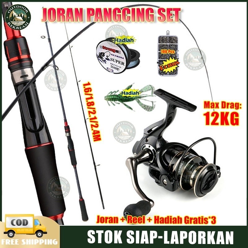 Carbon Fiber Ultralight Strong Elasticity Joran Pancing 1.65M/1.8M/2.1M 2 Sections lentur Fiber Fishing Pole Spool Metal