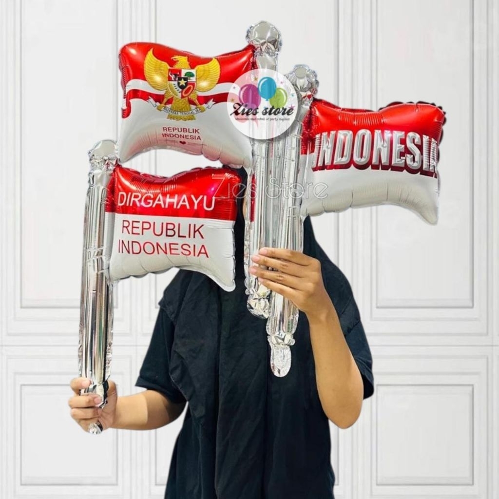 PACK ISI 50 Balon foil Stick bendera merah putih / DIRGAHAYU RI 17 agustus