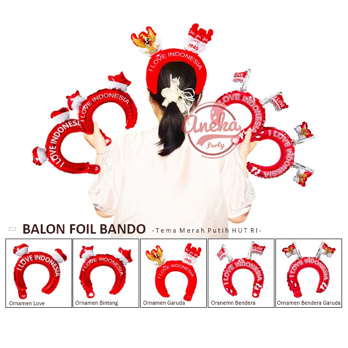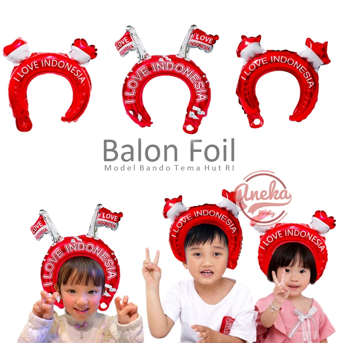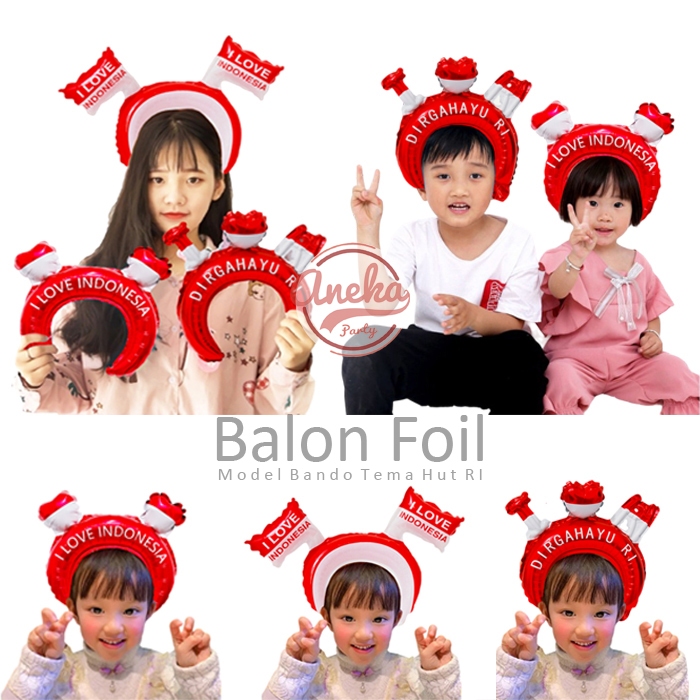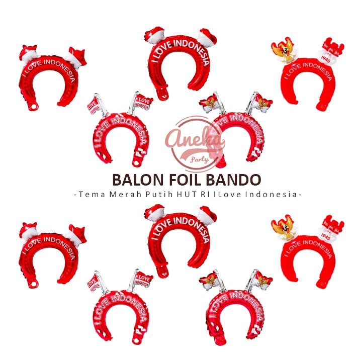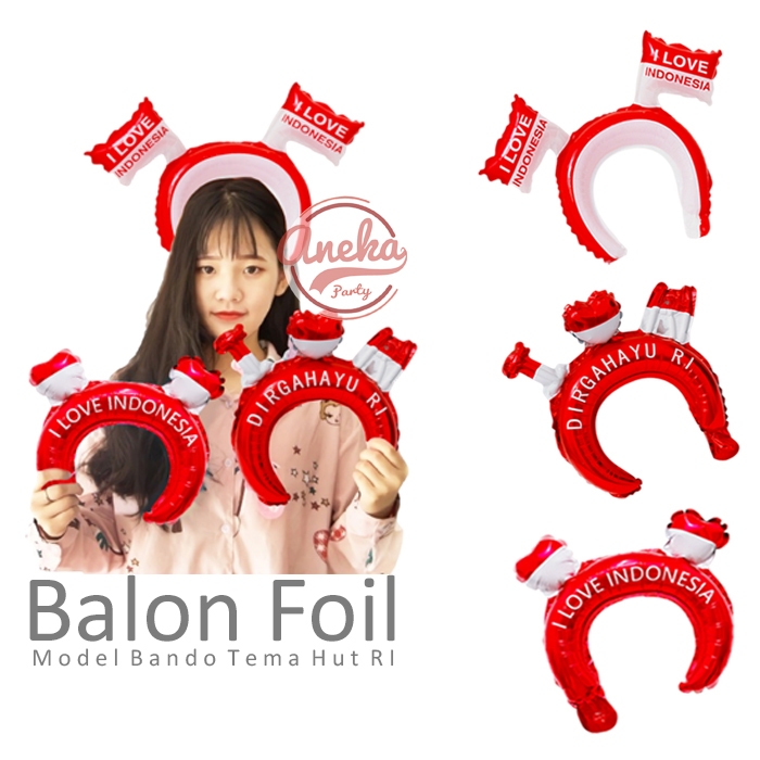 isi 50 Balon foil Bando Merah Putih / Balon Bando Dirgahayu Ri I love Indonesia / balon bando bendera indonesia