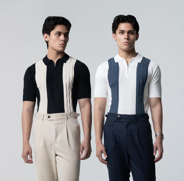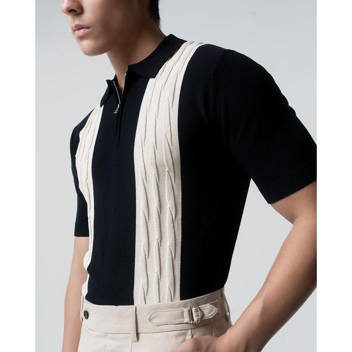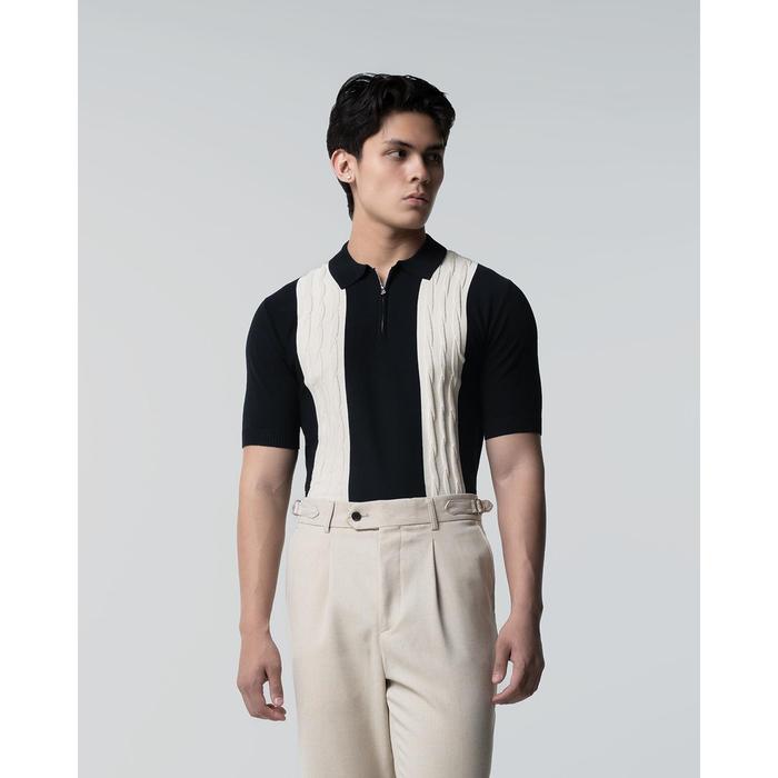 Balvein - Versase Knit Polo Knitwear Atasan Katun Kerah Pria - Hitam, 2Xl