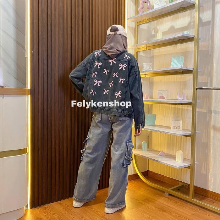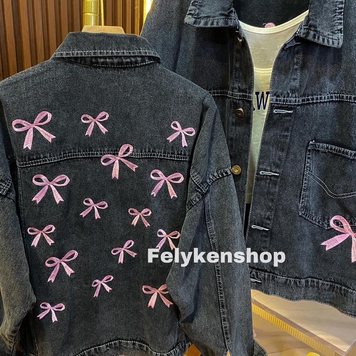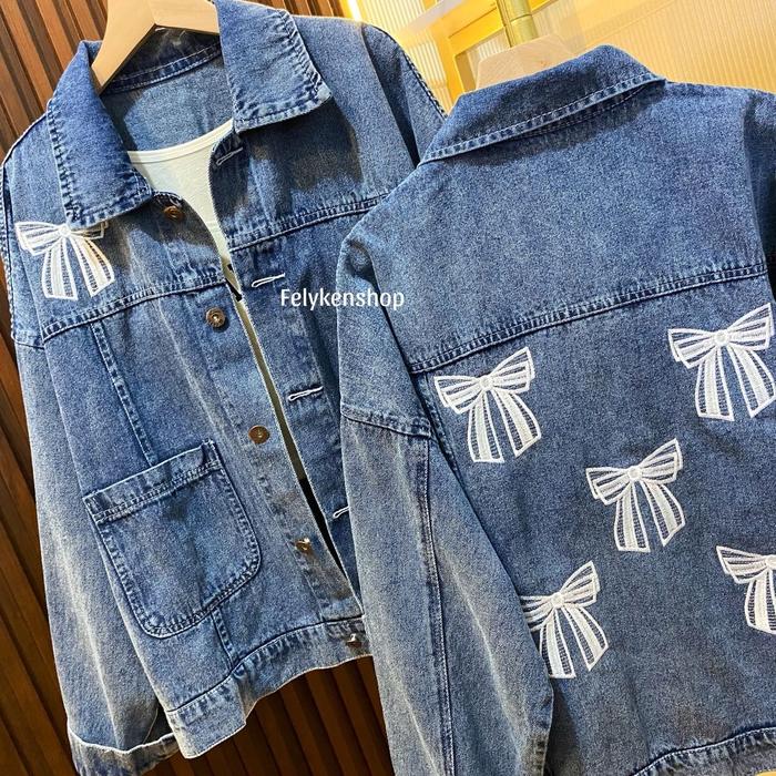Jaket Jeans Oversize Bordir Kode Mp 069 F / Jaket Denim Wanita / Jaket Jeans Bordir Kekinian - Double Pita