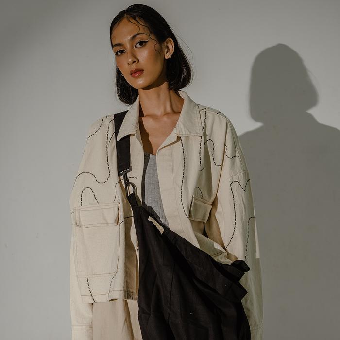 Filoposy Jacket Hanna Jacket (Uifw2023 Collection) Vintage Denim Basic Outer Panjang - Garment Wash