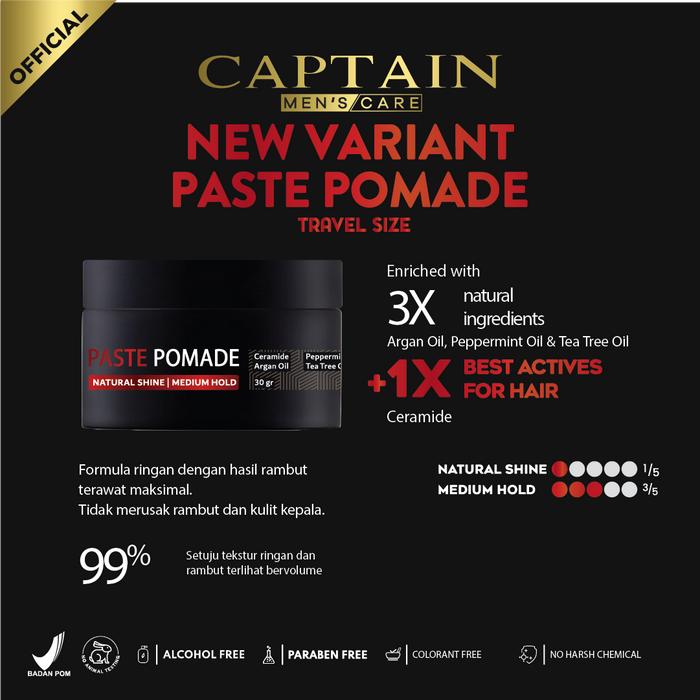 Captain Men'S Care Paste Fiber Wax Pomade 30Gr / Pomade Pria / Medium Hold / Natural Shine / Flexible Styling / Gaya Ram