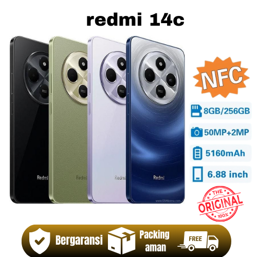 [Mall]HP XIAOMI REDMI 14C Ram8/256GB Baru Original segel kamera HD Garansi Resmi 12 bulan gratis softcase