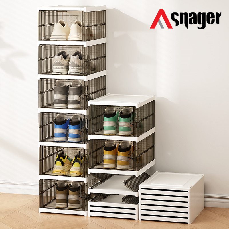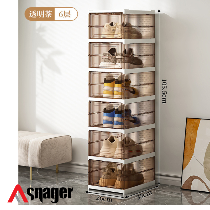 Snager Rak Sepatu Lipat Plastik Transparan Import Penyimpanan Multifungsi Tertutup Anti Debu Aesthetic 6 Susun Bertingkat Bukan Antbox