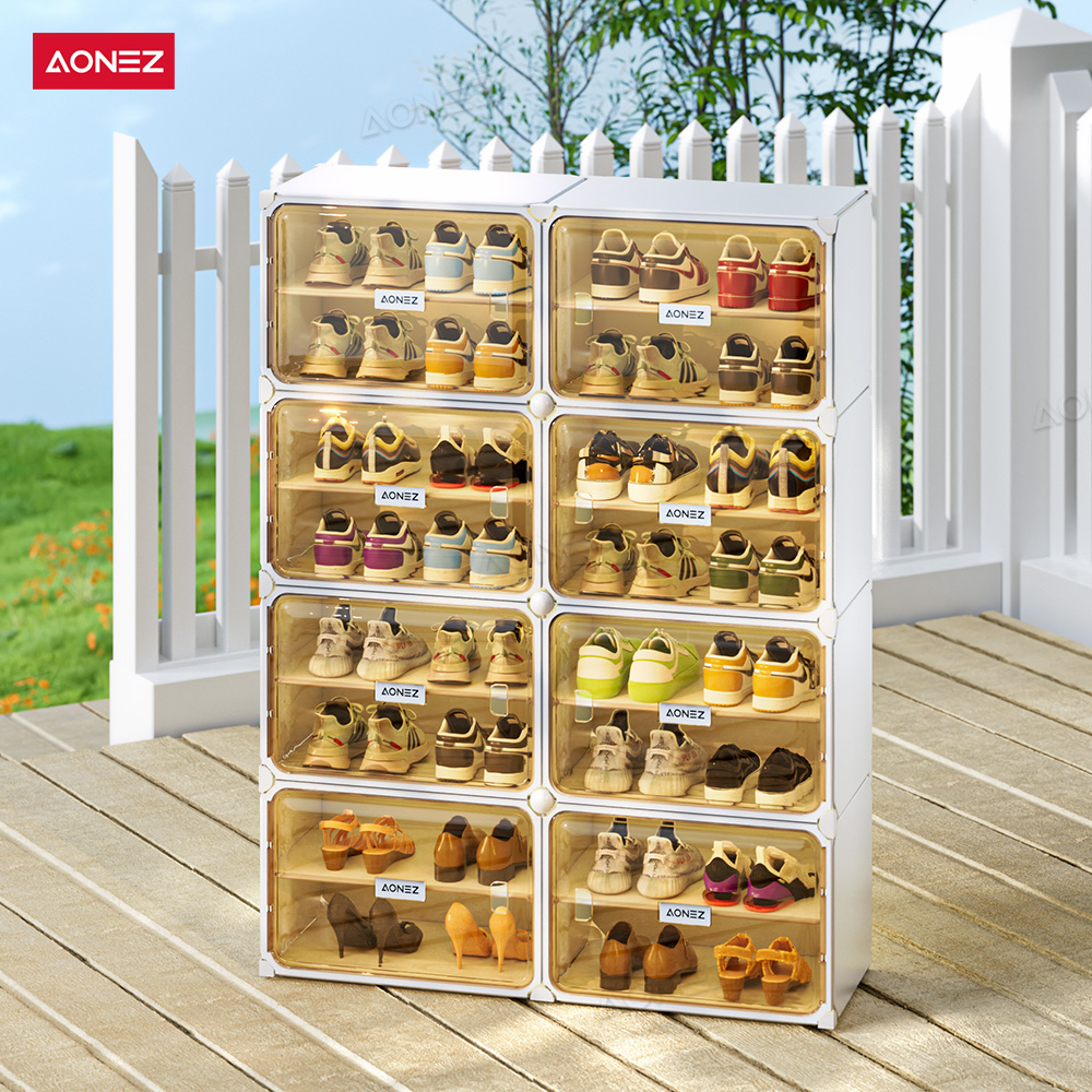 AONEZ Rak Sepatu Tertutup 8 Layer Lemari Sepatu Transparan Anti Debu Serbaguna Kotak Sepatu Lemari Penyimpanan