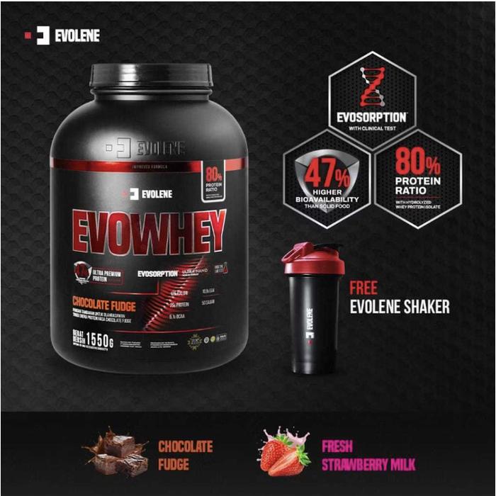 Evolene Evowhey Whey Protein 50 Sachet Serving Susu Evo Whey Gym - Evosorb Choco, + Shaker