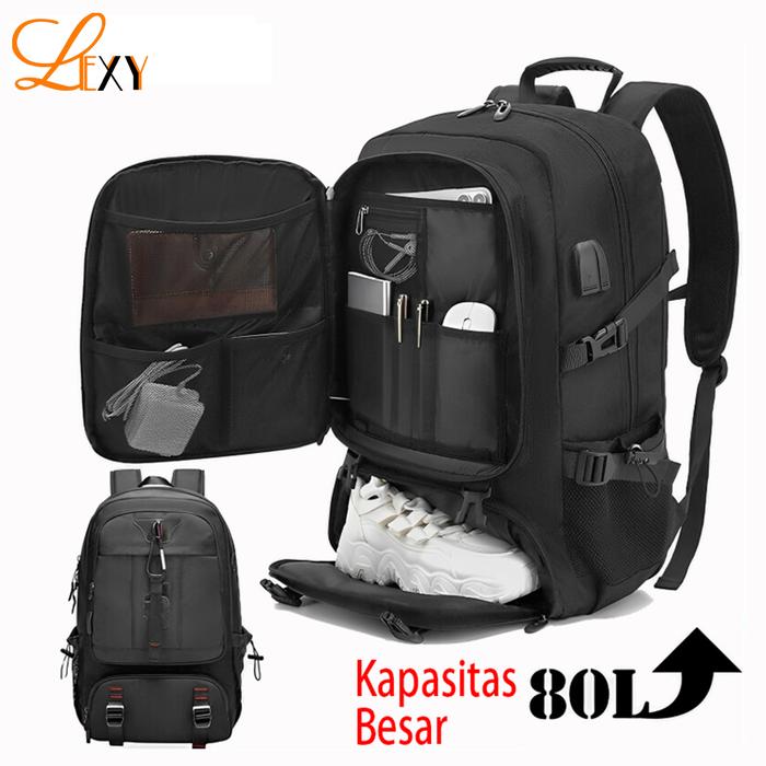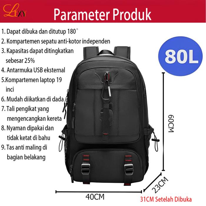 Lexy Tas Ransel Traveling Pria Multifungsi 50-80L Tas Gunung Tahan Air Luar Ruangan Kapasitas Besar Travel Mudik - 50L: