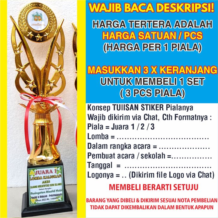 Piala Set Lomba Juara 1 2 3 Trophy Lengkap Stiker Dengan Pita Merah Putih Piala Murah Piala Lomba 17 Agustus