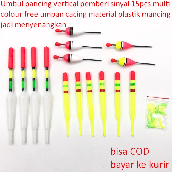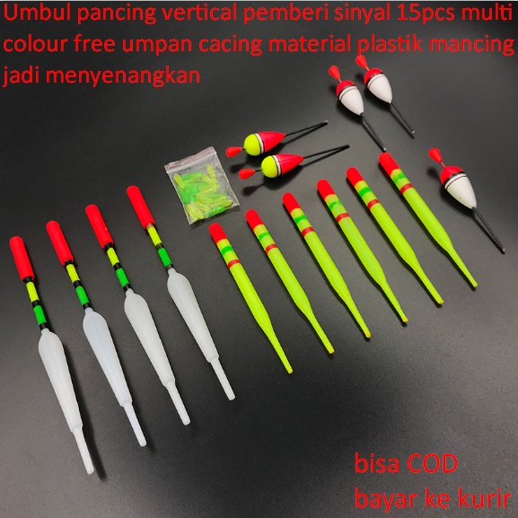 Umbul pancing vertical pemberi sinyal 15pcs multi colour free umpan cacing material plastik mancing jadi menyenangkan