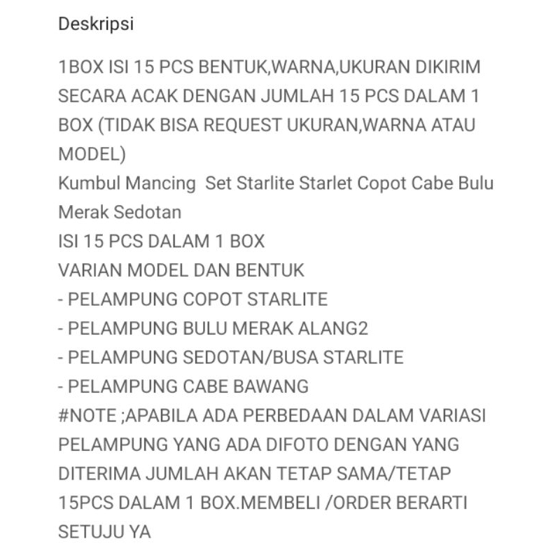 1 Box Pelampung Pancing 15pcs Kumbul Mancing Set Starlite Starlet Copot Cabe Busa Alang2 dll