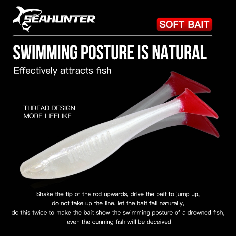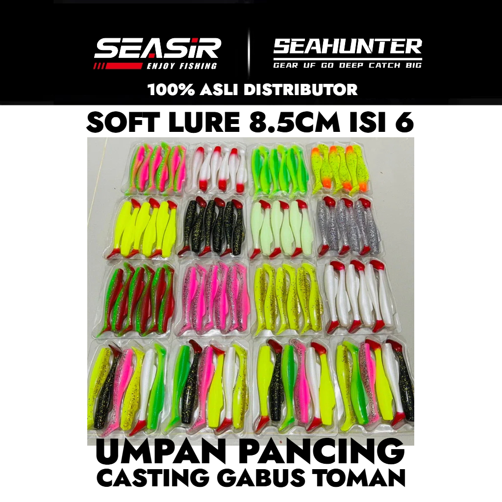SEAHUNTER SOFT LURE 8.5CM ISI 6 UMPAN PANCING CASTING GABUS TOMAN TPE Soft T Tail Bait