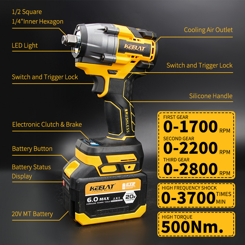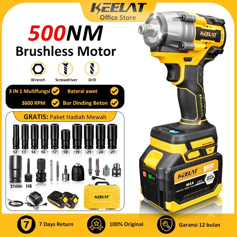 KEELAT-KID011 500NM Brushless Impact wrench Cordless Mesin bor Impact baterai Impact 2baterai 13MM impek baterai torsi b
