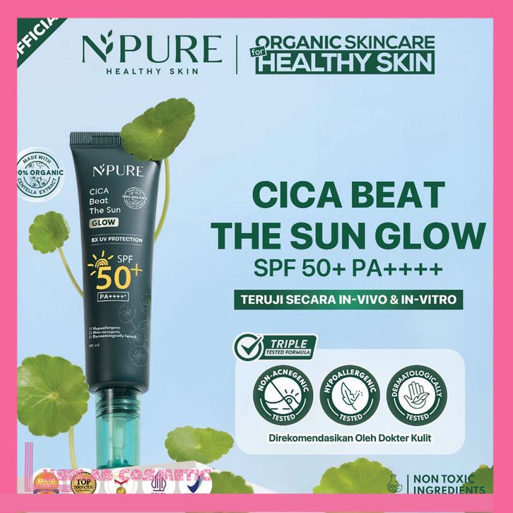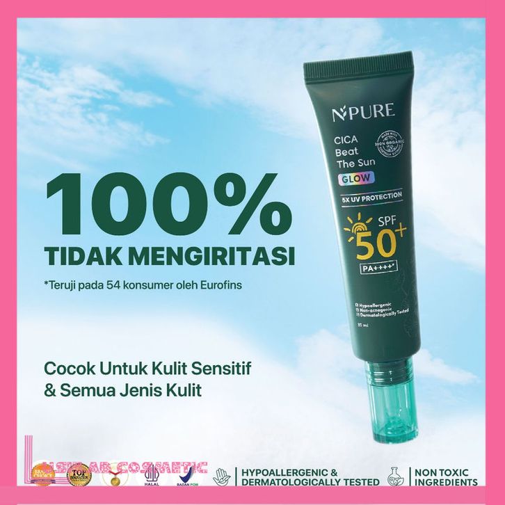 NPURE Sunscreen Cica Beat The Sun Glow / Sunscreen Hypoallergenic / SPF 50 PA / Kulit Kering Jerawat