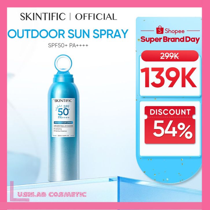 SKINTIFIC Outdoor Sunscreen Spray SPF 50 PA 250ml UV Mist Tone Up Sun Shield Sunscreen Whitening Glowing