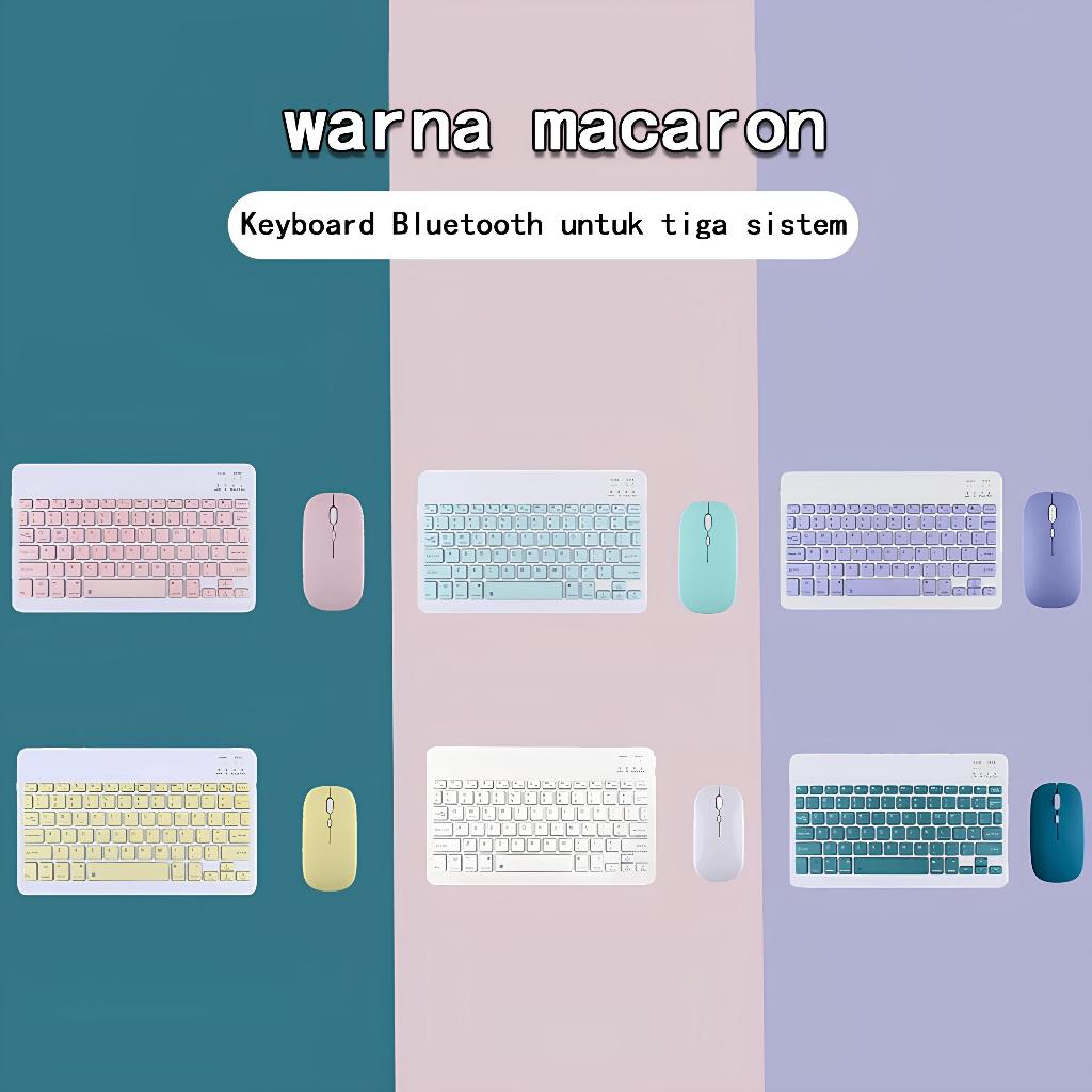 Wireless Bluetooth Keyboard Mouse 10 Inch Set - Ringan, Portable, Kompatibel iPad/Tablet/Laptop, Warna-Warni Modern