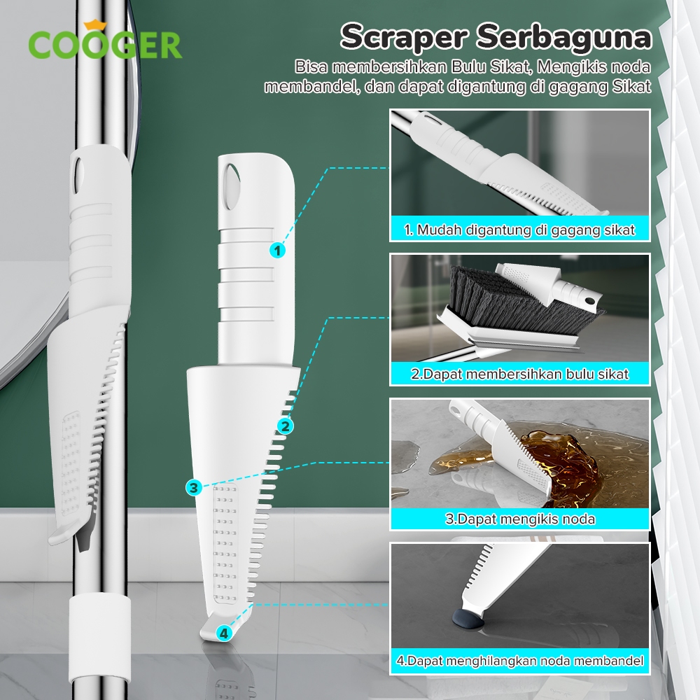 COOGER Sikat Karpet & Sikat Lantai 2in1 - Dengan Serokan Air, Sikat Dorong Gagang Panjang, Sikat Kamar Mandi, Sikat Toil