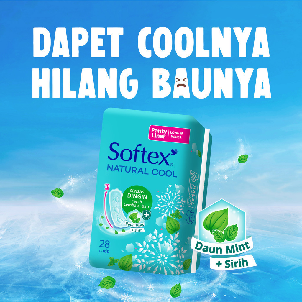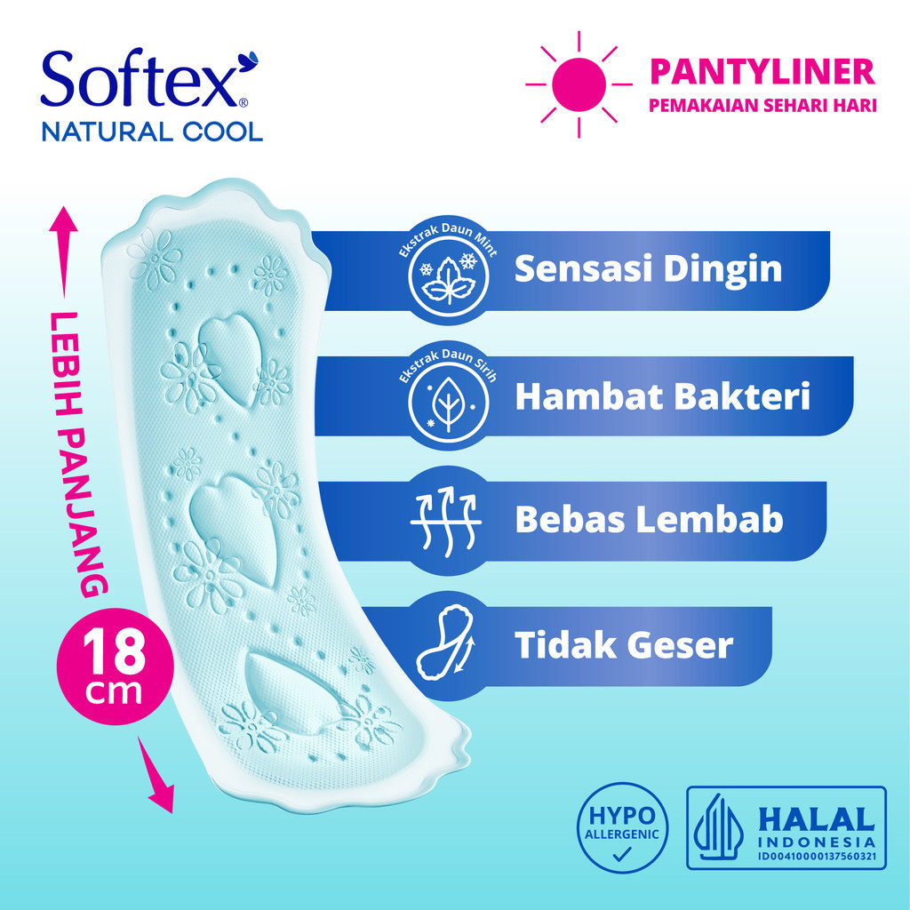 PANTYLINER SOFTEX NATURAL COOL SUPER SLIM LONGER & WIDER 28 PADS - PANTYLINER COOL
