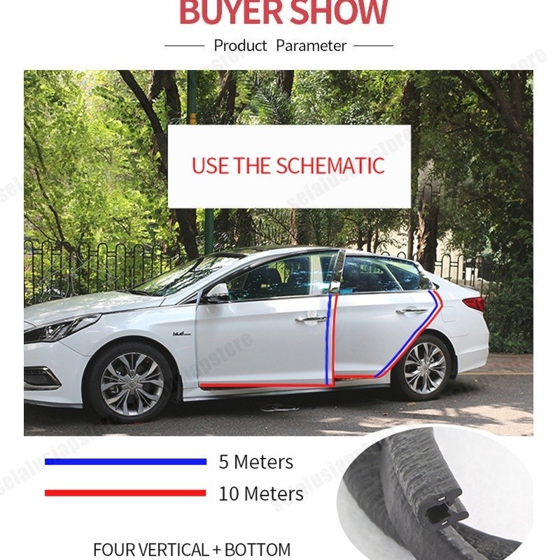10 meter List Pintu Mobil Universal Karet Pintu Mobil Pelindung Pintu Hitam / Pelindung Tepi Dilindungi Lapisan U Bentuk