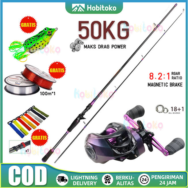 【Beli 1 Gratis 4】Joran pancing 1 set Joran pancing Set 1.65-2.4M Fishing Rod Mesin Pancing Casting Bc Reel 7.2:1 Gear Ra