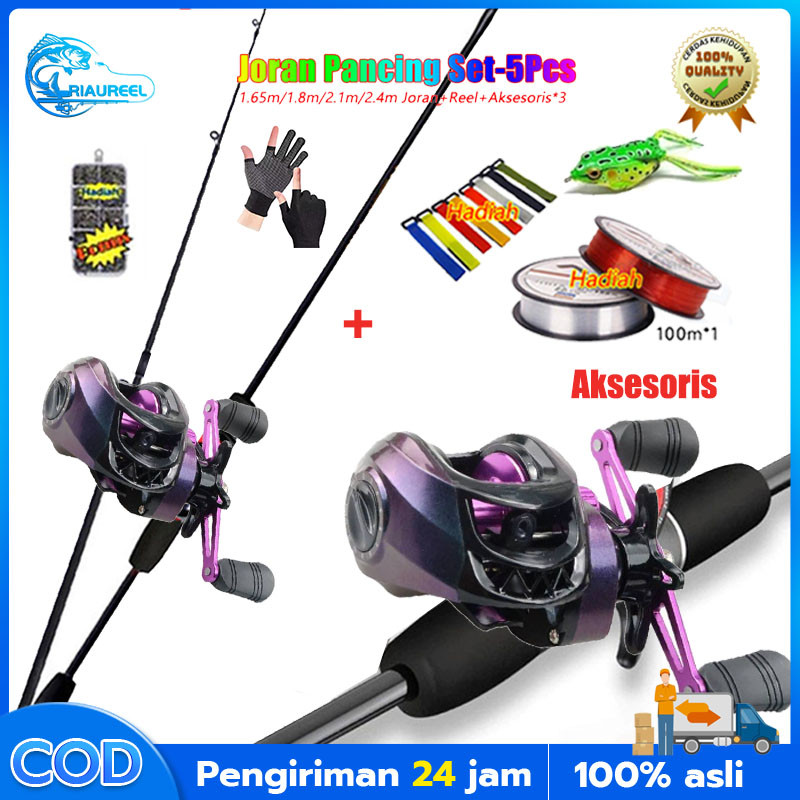 [Riaureel] Joran pancing set 1.65m/1.8m/2.1m/2.4m Baitcasting Fishing Rod fishing pole reel pancing fishing reel 7.2:1 L