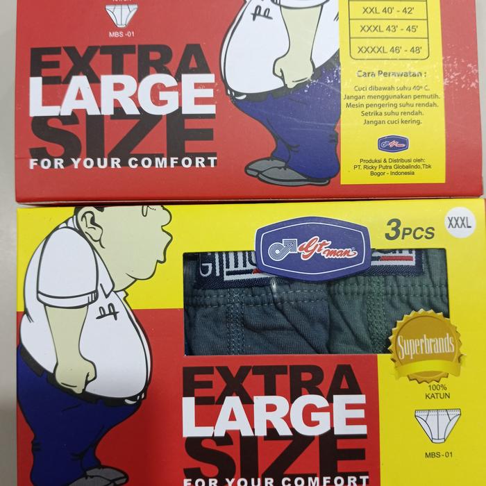 Celana Dalam Pria Gt Man Big Size Mbs Jumbo Isi 3 / Cd Gtman Mbs01 Xxl.Xxxl.Xxxxl Katun Cowok Dewasa - Xxxxl