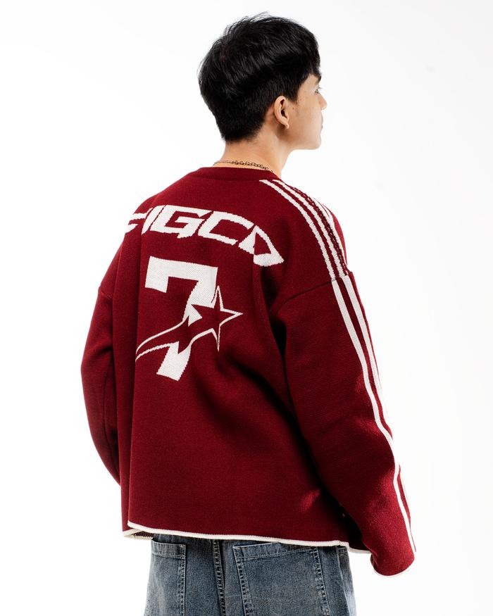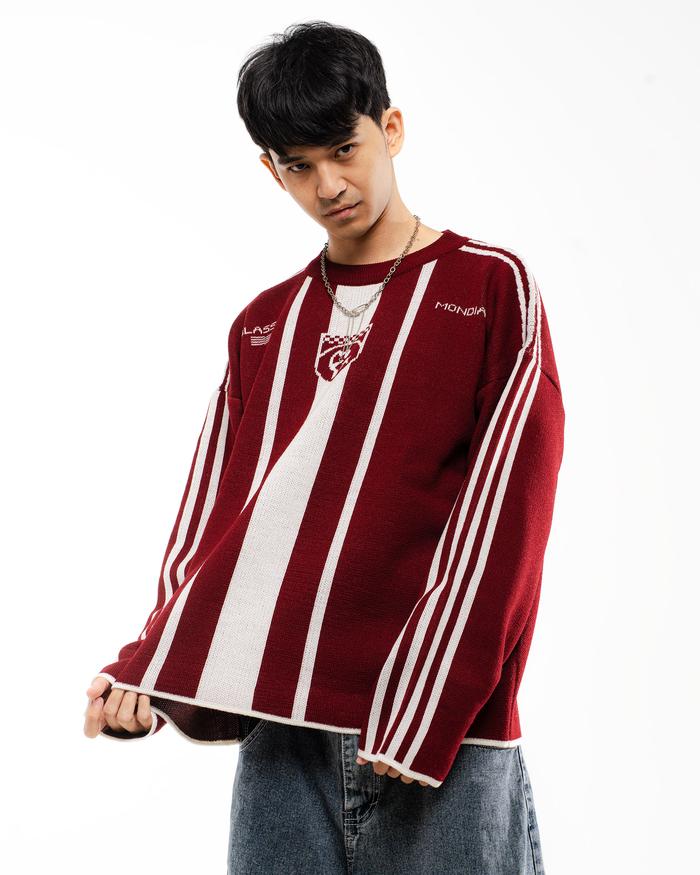 Figco - Jersey Knitted Boxy Knitwear Sweatshirt Classici Football Mondiali Maroon