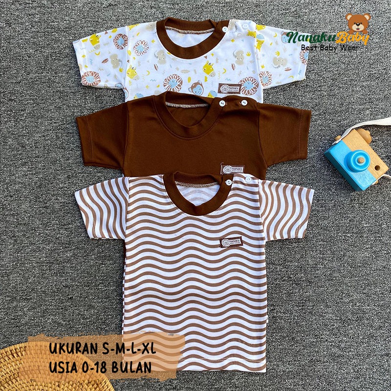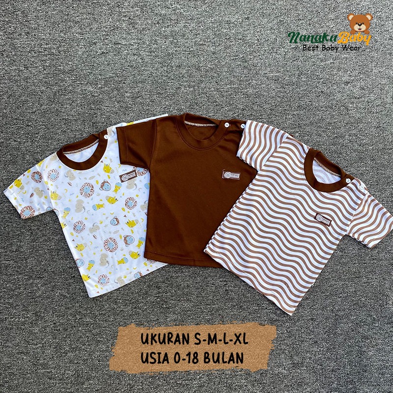 Nanaku Baby - Paket Baju Bayi Kaos Oblong Newborn Isi 3 Ukuran S M L XL Kualitas Premium Series Caramel Usia 0-18 Bulan