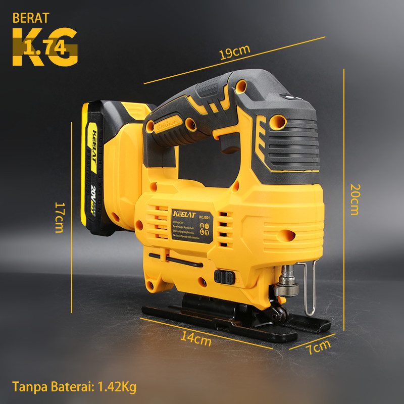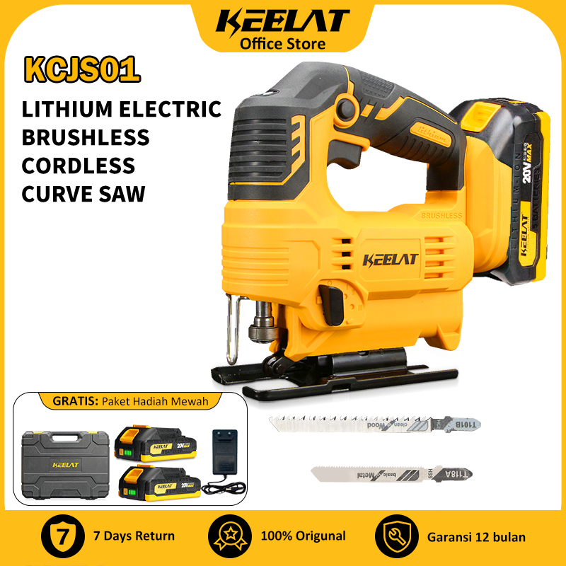 【KEELAT KCJS01】 Jig saw 20V Tanpa Kabel, Baterai Brushless, Mesin Router Listrik