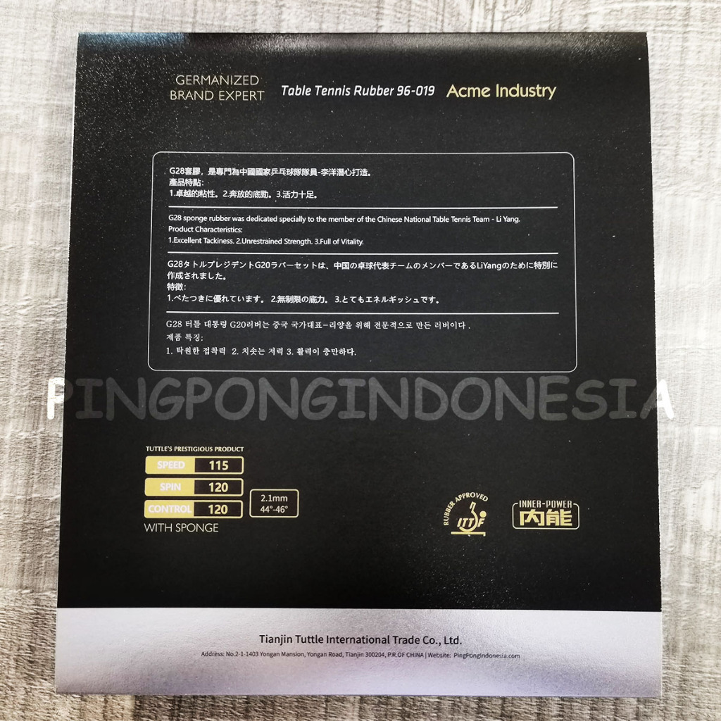 Tuttle TMAX G28 - Rubber Karet Pingpong Tenis Meja Bat Bet 2.1mm Hardness 44-46 Tuttle TMX 28