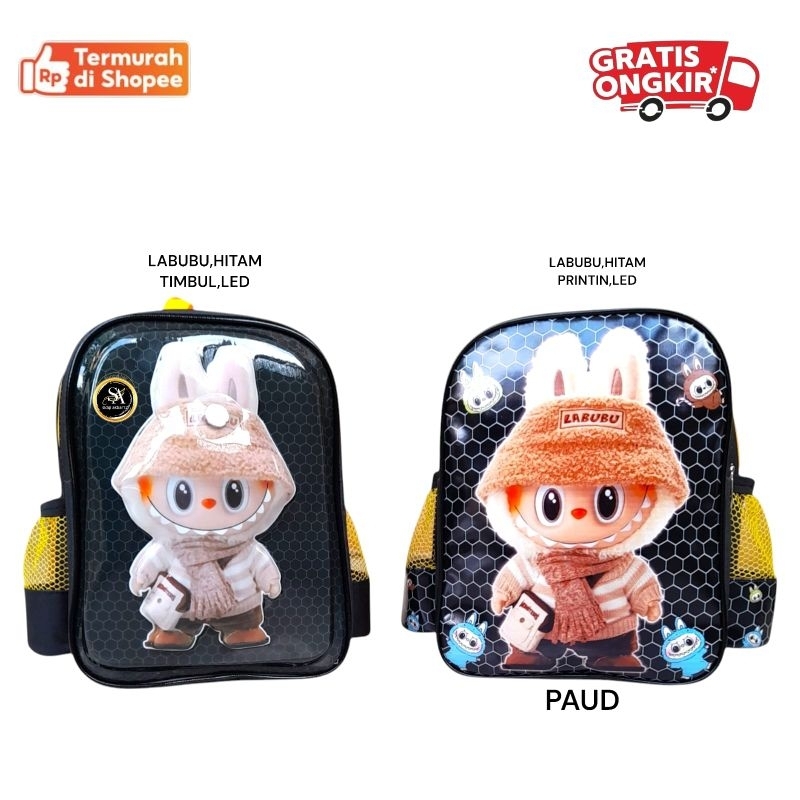 TAS Labubu Anak SD TK dan PAUD TAS Anak Laki Laki TAS Perempuan TAS Led Timbul 3D TAS Printing Led