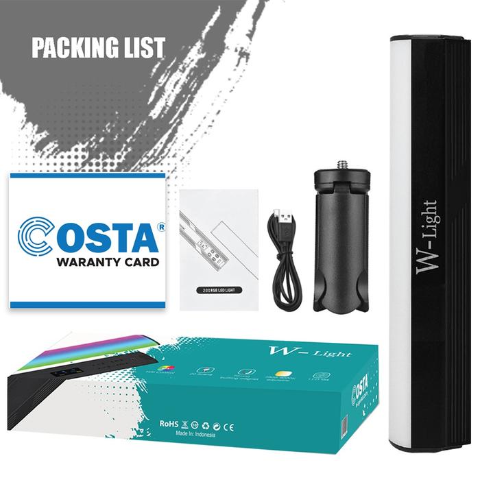 Costa W-Light Magnetic Rgb Led Light Tube 20Cm Lampu Vlog Video Portable For Tiktok / Youtuber 2500-9000K (Free Mini Tri