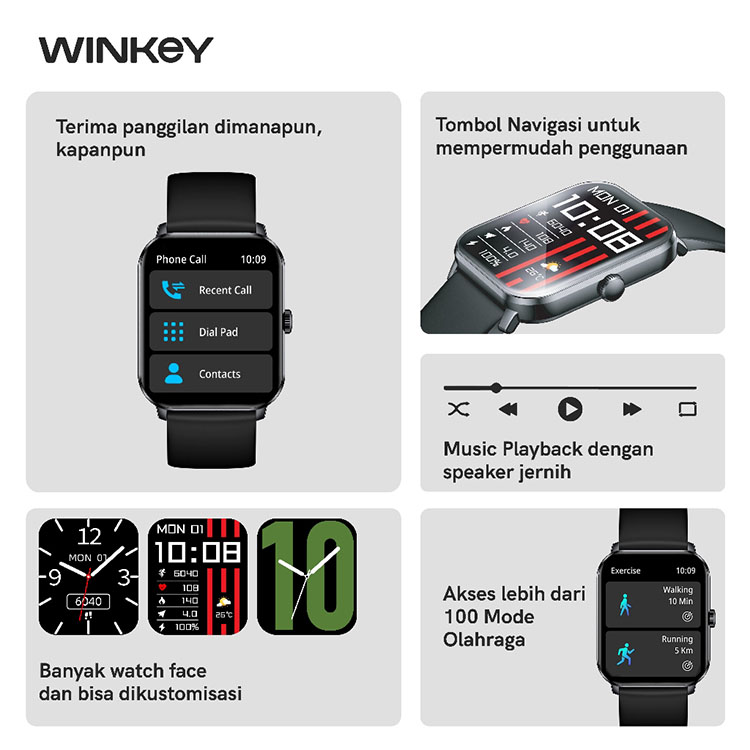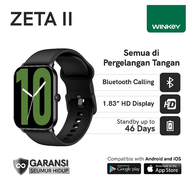 WINKEY ZETA II Smartwatch Jam Tangan Pintar Bluetooth Calling 100+ Mode Olahraga