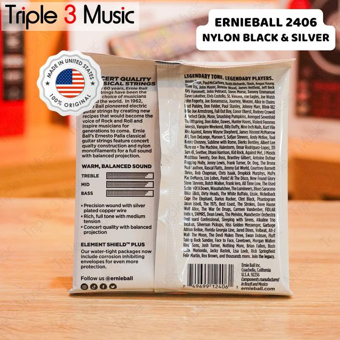 Ernie Ball Ernieball 2406 Original Senar Gitar Akustik Nylon Black Sv - Warna