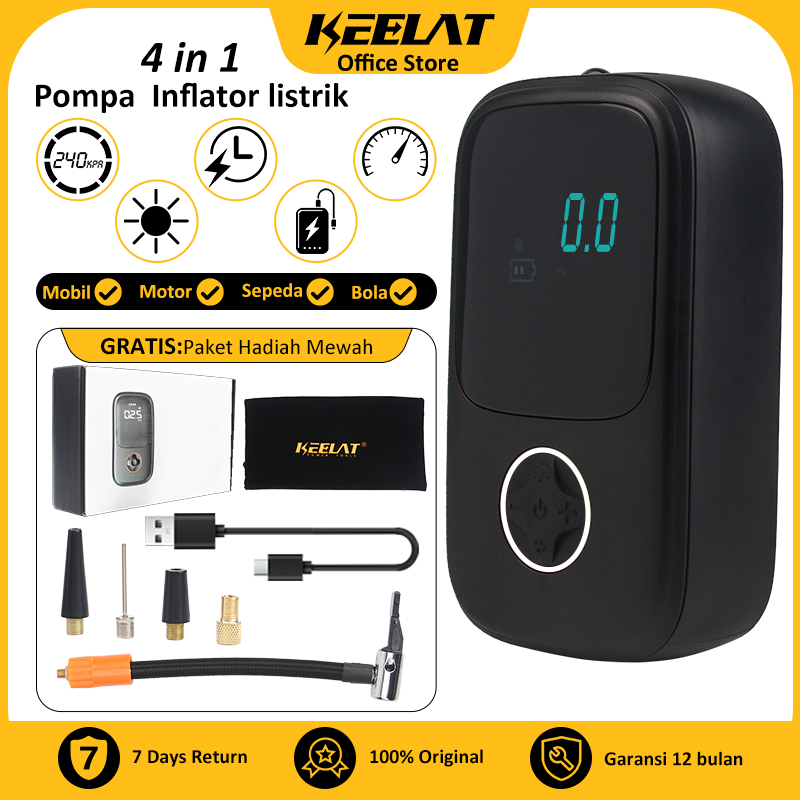KEELAT KCI01 12V Pompa Ban Mobil Truk Motor Elektrik Cek Tekanan Angin Digital LCD Display Portable Inflator Air Pompa K