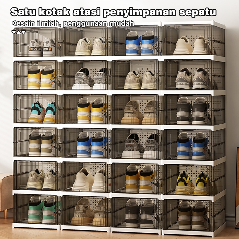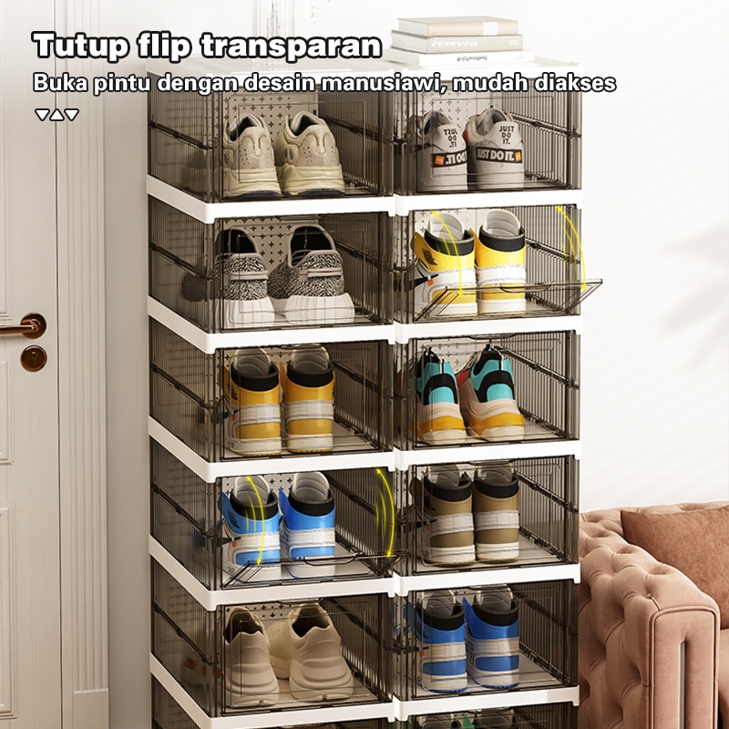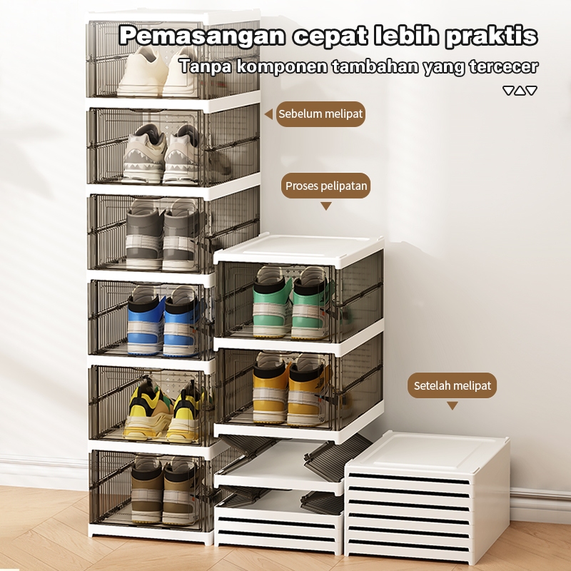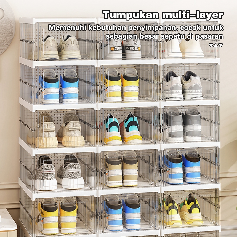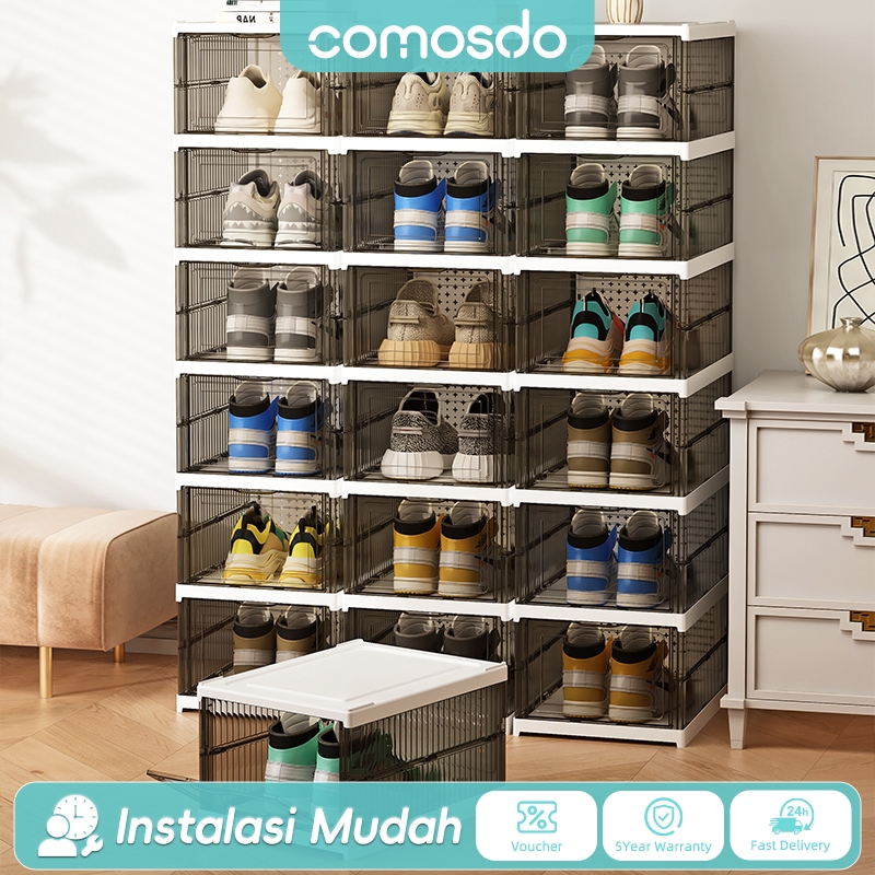 Comosdo Lebih Tebal Dan Kuat Kotak Sepatu Ukuran Ekstra Besar Shoe Storage Boxes Susun Plastik Lemari Sepatu Rak kotak sepatu
