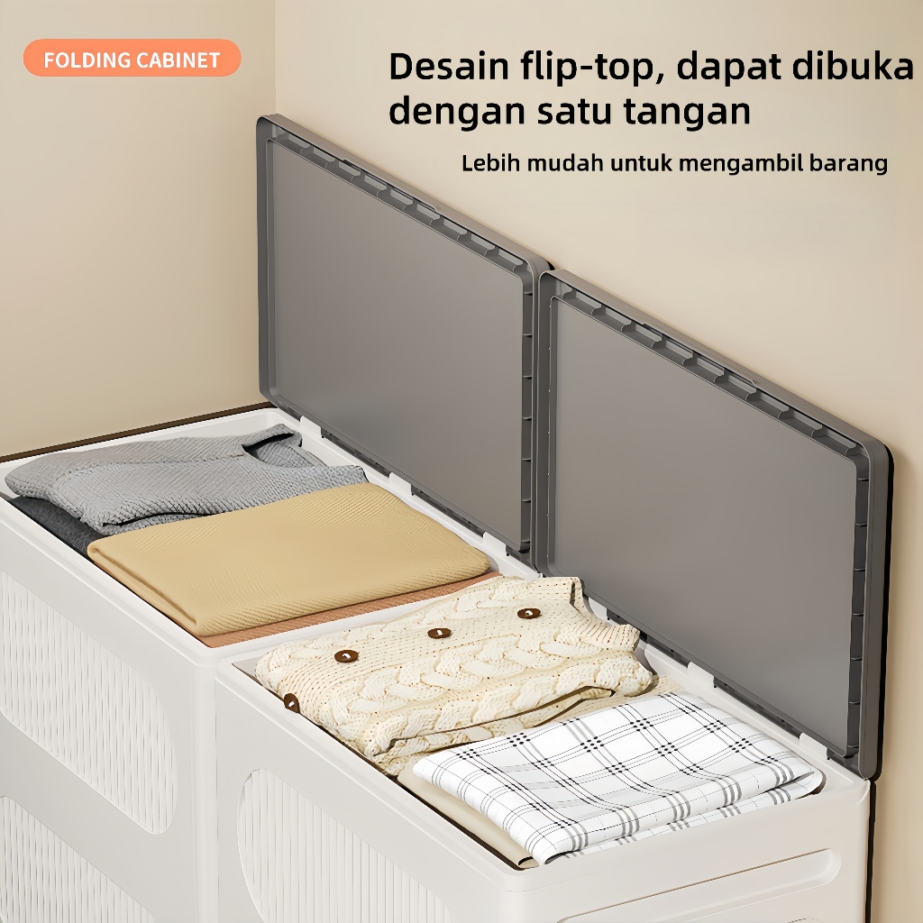 Kotak lemari plastik desain flip tinggi 60CM/kotak penyimpanan lipat serbaguna/kotak loker/kotak mainan, kotak penyimpanan pakaian/keranjang penyimpanan pakaian
