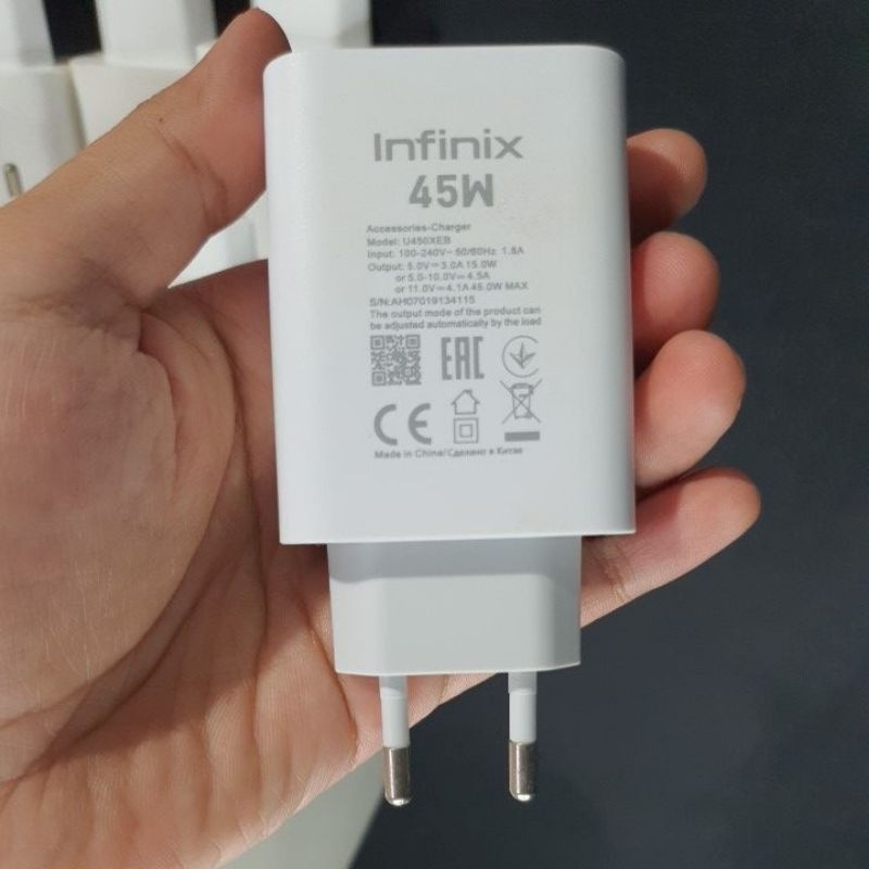 Charger INFINIX 45Wat 4.1A ASLI BAWAAN HP SUPER CHARGER Ori Zero 20, Zero X Pro, Note 30 Type C Dijamin Original
