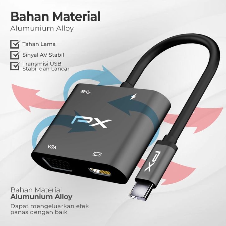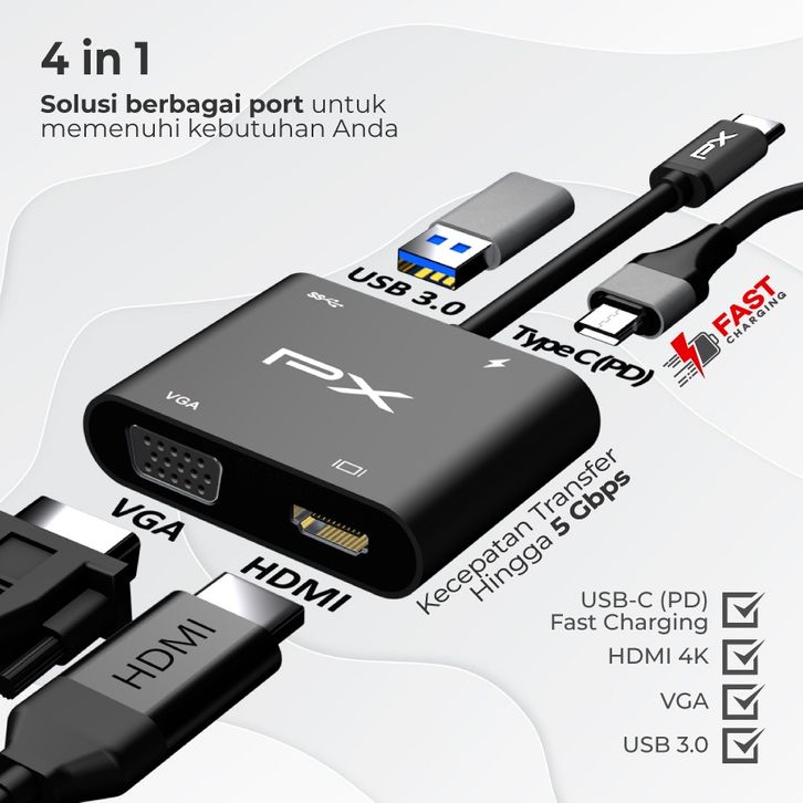 Hub Converter USB Type C 3.1 to HDMI 4K VGA USB 3.0 4 in 1 PX UCH14B