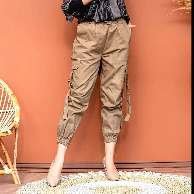 Celana Cargo Jogger Wanita Jumbo Bahan Twill Combed Melar