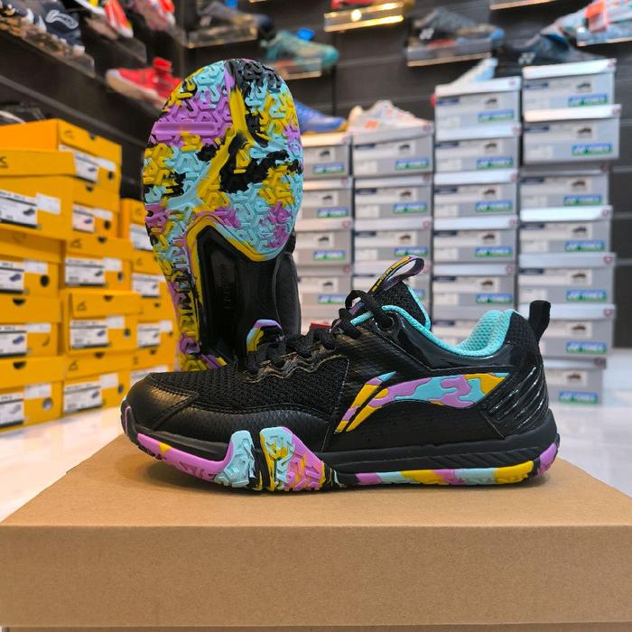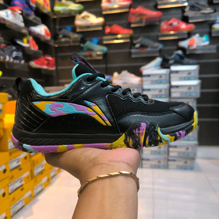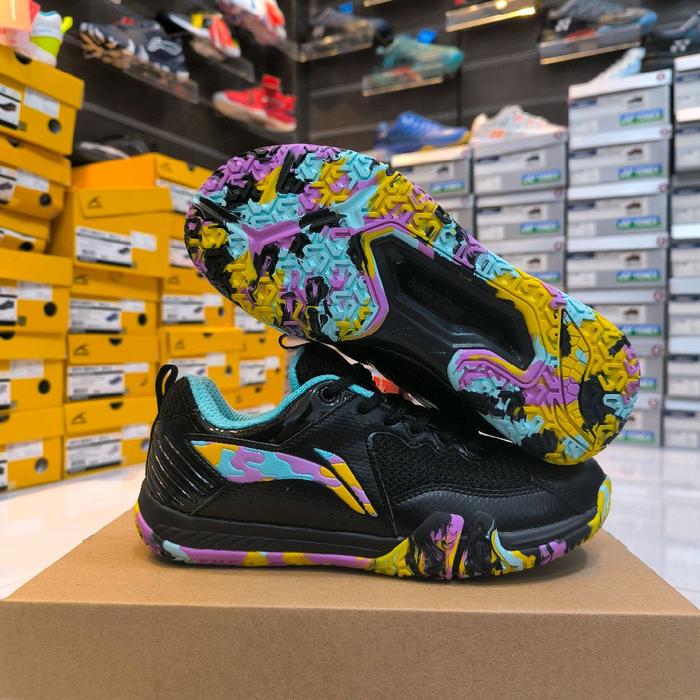 Sepatu Badminton Lining Saga Lite 9 New Color-Sepatu Bulutangkis Terbaru Saga 9 Free Kaos Kaki - Black Purple, 39
