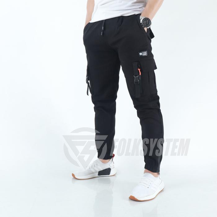 Celana Cargo Jogger Pants Panjang Pria Ziper Folksystem - Hitam, S