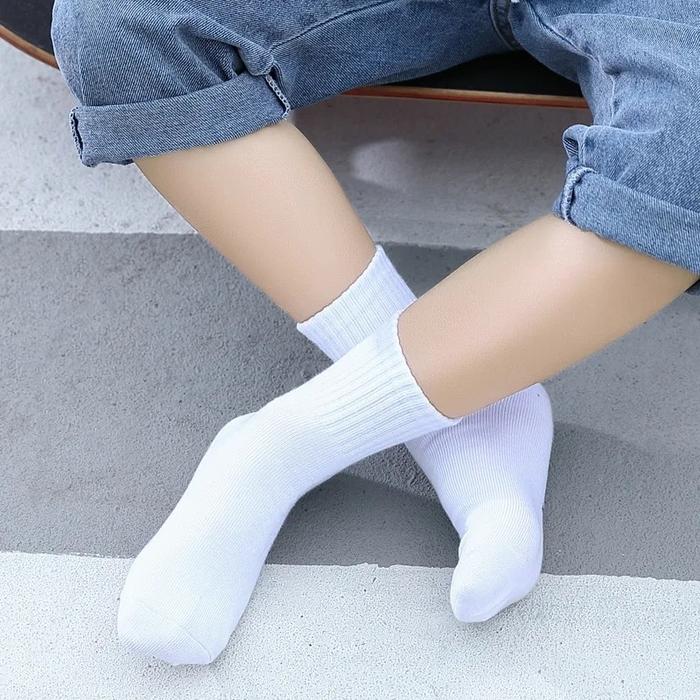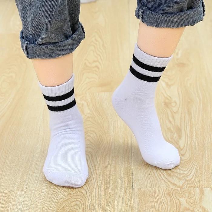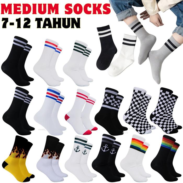 Kaos Kaki Anak Sd Smp 7-12 Tahun Motif Oldschool Distro Garis Setrip Strip Panjang Tebal - Sendy Socks - Hitam St 2 Puti