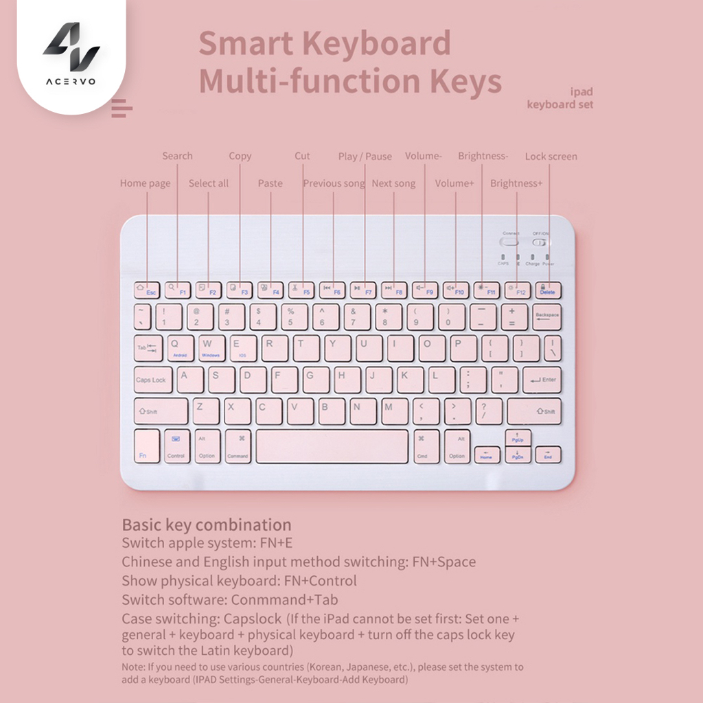 Wireless Keyboard Bluetooth 10 Inch Backlight Slim Thin Portable Suitable for iPad Samsung Xiaomi