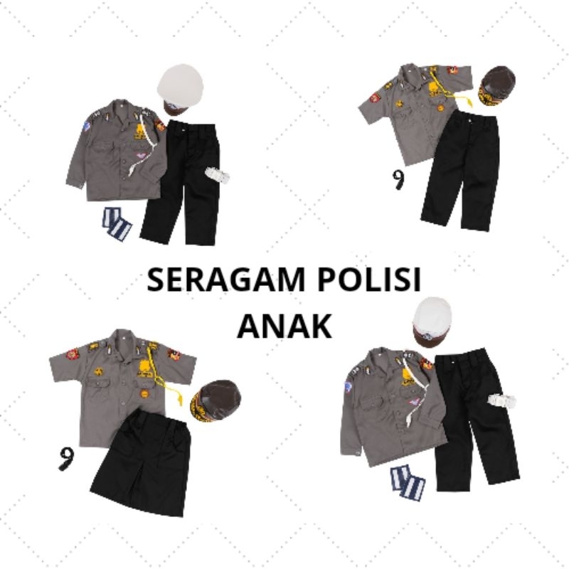 BAJU SETELAN POLISI ANAK LAKI LAKI PEREMPUAN COWOK CEWEK ROK KOSTUM PROFESI SERAGAM KARNAVAL ANAK