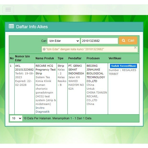RECARE TES KEHAMILAN / TEST PACK / PREGNANCY TEST - 1 STRIP